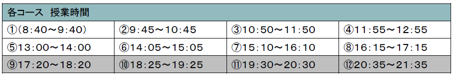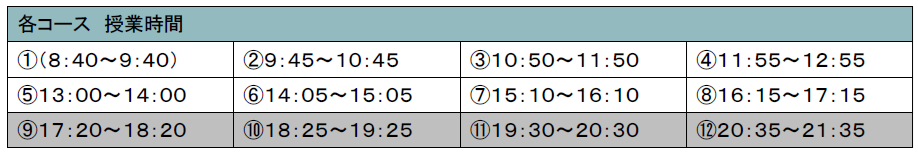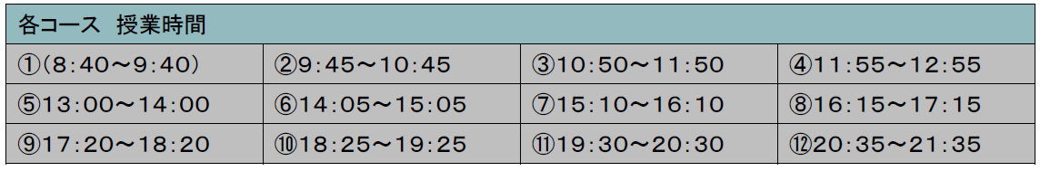 ※高校1・2年生のみなさんには「⑨~⑫の時間帯」で授業を予定させていただきます。