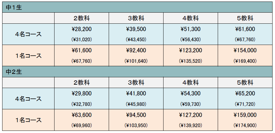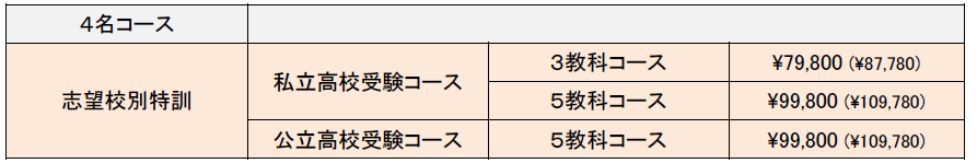 ・最大4名(高3は最大2名)で同時に授業を受ける「4名コース」と、先生と1対1でじっくり学べる「1名コース」のいずれかを選択してください。