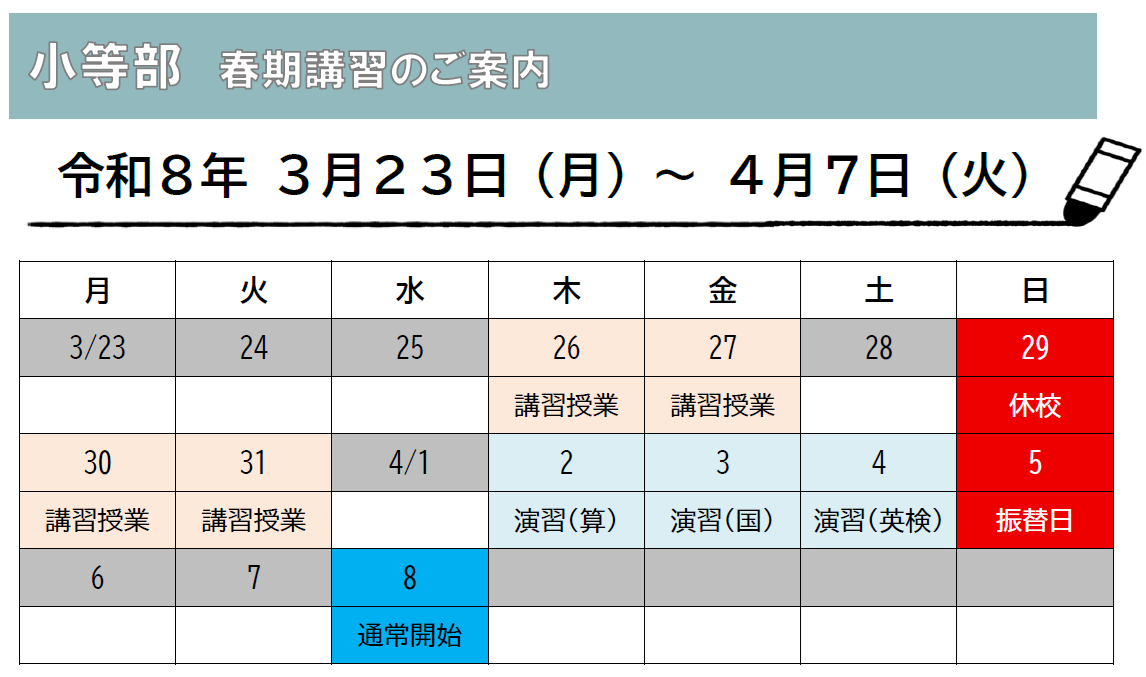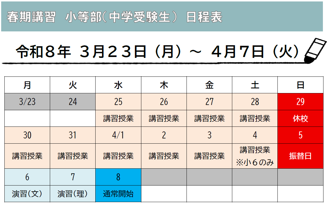 小等部(中学受験生) 日程表