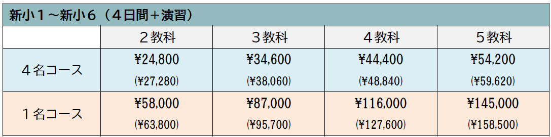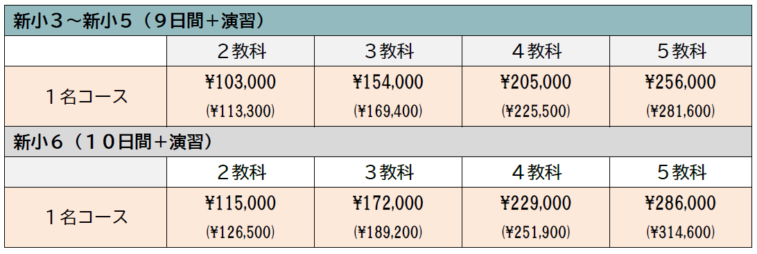 【中学受験コース()内は税込】