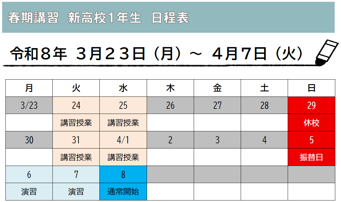新高校1年生 春期講習のご案内