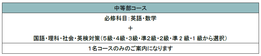 中学3年生は、国語・数学・理科・社会・英語・英検の6教科から、1教科あたり60分の授業コースを選択します。