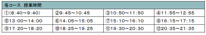 ※高校1・2年生のみなさんには「⑨~⑫の時間帯」で授業を予定させていただきます。