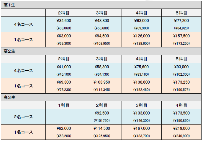 ・最大4名(高3は最大2名)で同時に授業を受ける「4名コース」と、先生と1対1でじっくり学べる「1名コース」のいずれかを選択してください。